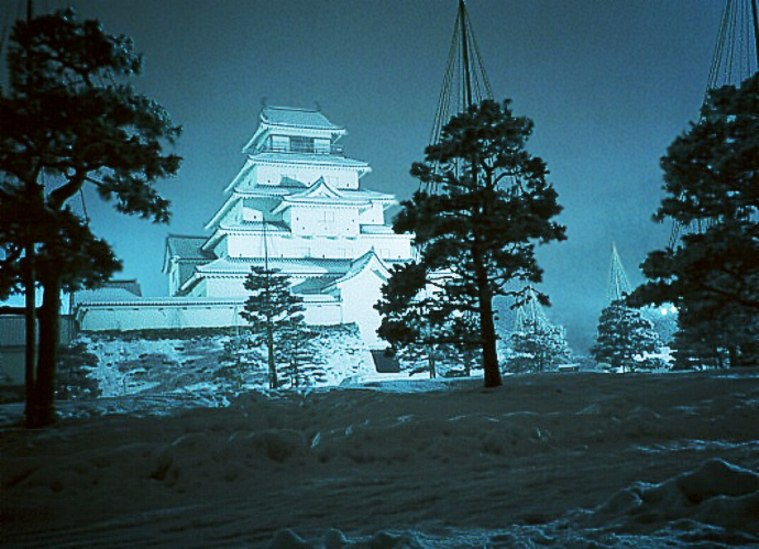 One of the reasons why Wakamatsu still has this old town atmosphere is of course the castle Tsuruga. It lies in the middle of a park, the former castle grounds, close to the city center. It's past was quite turbulent and started back in the 14th century as a dwelling with a watchtower. Because times were rough and civil wars frequent this tower was strengthened over the years, so it could also be used as a fortification. In the 16th century however a shogun named Hideyoshi Toyotomi came to the area, decided that all this was not good enough and ordered one of his aides to build a new castle from scratch and while having a go at it anyway, to reorganize the layout of the town as well. This home improvement led to a seven story high tower which appearance reminded people of cranes in flight, hence the name Tsuruga. (Tsuruga in Japanese means crane and stands for longevity and purity.) Later this tower was restructured to a five story building. Finally in 1868 another civil war raged through Japan. This time the new emperor Meiji tried to regain the power for the imperial throne. His ancestors were powerless for centuries, the country was run by various shoguns. The clan of Aizu was opposed to the emperor and built an alliance with 40 other lords of northern Japan. The imperial troops besieged the castle in Aizu and eventually after one month the defender had to give up. There are all kinds of stories about women and children soldiers, collective suicides etc. connected with this battle, all very colorful and grooling. Good material for a movie. Because of the resistance and the subsequent defeat order was given to tear down the remains of the castle in 1874. The Tsuruga castle of today is a rebuild of the five story design, done in 1965. Only the stonewalls in the park are original. The inside of the tower offers the homy atmosphere of a concrete building of the 60's, that we all love so much and hosts a history museum, unfortunately without English explanations. The top offers a nice view of the surrounding area.
