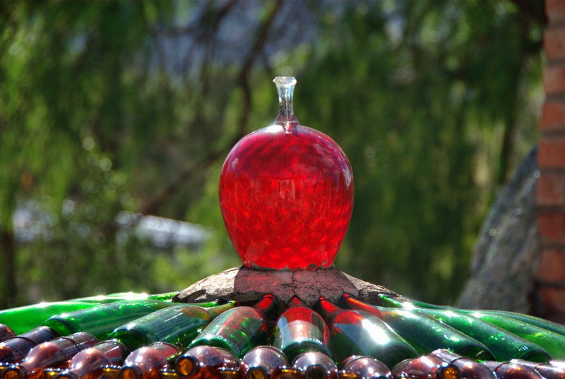 The art part started with a certain Mrs. Helen Martins, who for no apparent reason decorated her house and garden with rather heavy folk art. People how like that style will find it great, we were underwhelmed. Now there is a number of galleries and most focus on folk art, but we found a nice black and white print of the town at the art center which we took home.