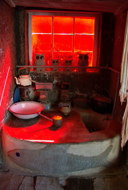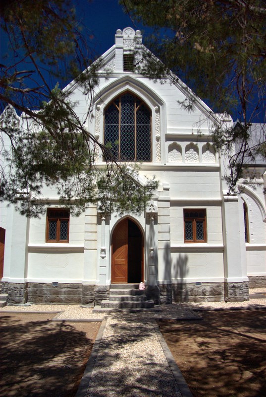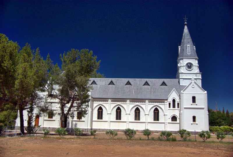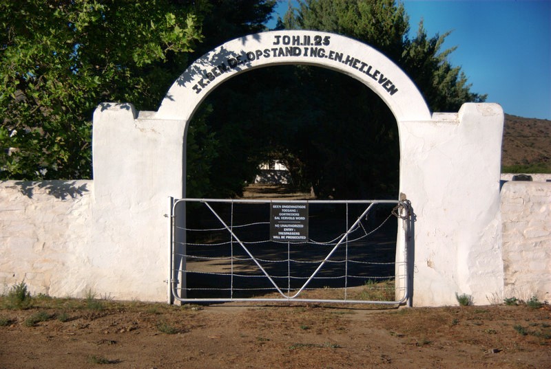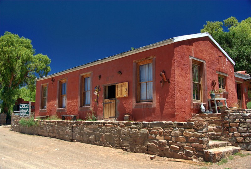 Nieu-Bethesda is a small (a grid of 4 by 6 roads), dusty (30 km dirt road to get there and only dirt roads in town) village in the Karoo (a desert in the south of South Africa). It is famous for being an art colony, for having fossils and tourists but no street lamps, which makes for better star gazing. Interestingly enough, there is a new part of the village a bid further away, probably where the workers live, which has street lights. The new part is not famous for anything.