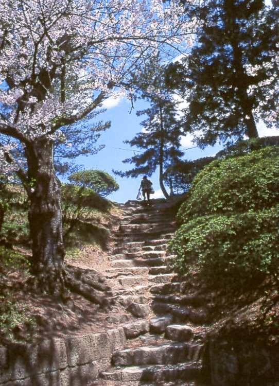 One of the reasons why Wakamatsu still has this old town atmosphere is of course the castle Tsuruga. It lies in the middle of a park, the former castle grounds, close to the city center. It's past was quite turbulent and started back in the 14th century as a dwelling with a watchtower. Because times were rough and civil wars frequent this tower was strengthened over the years, so it could also be used as a fortification. In the 16th century however a shogun named Hideyoshi Toyotomi came to the area, decided that all this was not good enough and ordered one of his aides to build a new castle from scratch and while having a go at it anyway, to reorganize the layout of the town as well. This home improvement led to a seven story high tower which appearance reminded people of cranes in flight, hence the name Tsuruga. (Tsuruga in Japanese means crane and stands for longevity and purity.) Later this tower was restructured to a five story building. Finally in 1868 another civil war raged through Japan. This time the new emperor Meiji tried to regain the power for the imperial throne. His ancestors were powerless for centuries, the country was run by various shoguns. The clan of Aizu was opposed to the emperor and built an alliance with 40 other lords of northern Japan. The imperial troops besieged the castle in Aizu and eventually after one month the defender had to give up. There are all kinds of stories about women and children soldiers, collective suicides etc. connected with this battle, all very colorful and grooling. Good material for a movie. Because of the resistance and the subsequent defeat order was given to tear down the remains of the castle in 1874. The Tsuruga castle of today is a rebuild of the five story design, done in 1965. Only the stonewalls in the park are original. The inside of the tower offers the homy atmosphere of a concrete building of the 60's, that we all love so much and hosts a history museum, unfortunately without English explanations. The top offers a nice view of the surrounding area.