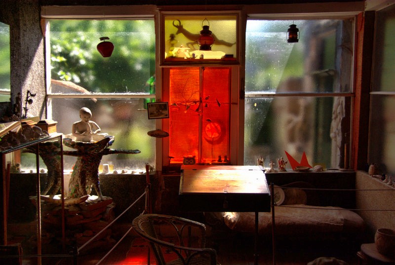 The art part started with a certain Mrs. Helen Martins, who for no apparent reason decorated her house and garden with rather heavy folk art. People how like that style will find it great, we were underwhelmed. Now there is a number of galleries and most focus on folk art, but we found a nice black and white print of the town at the art center which we took home.